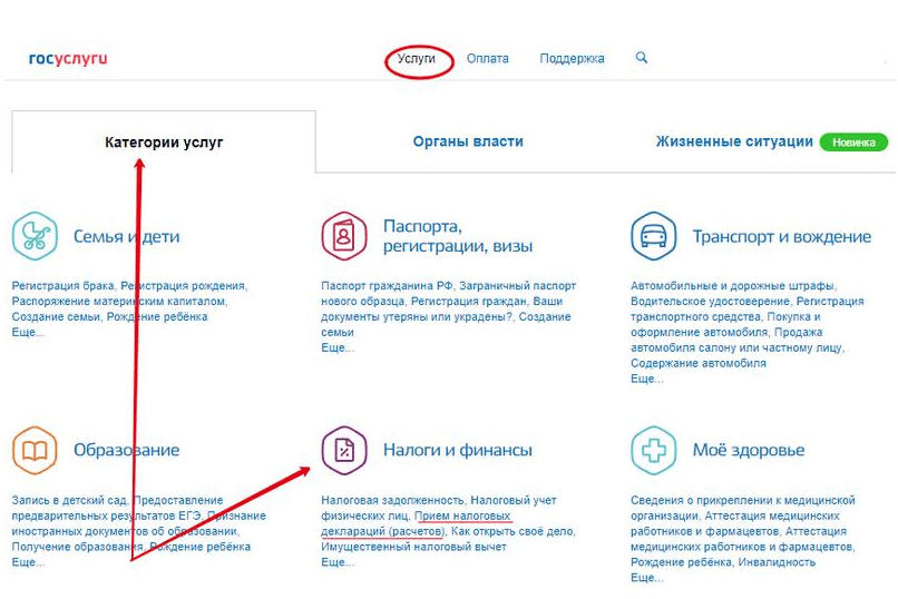 Для этого переходим на сайт Госуслуги и во вкладке «Услуги» выбираем «Налоги и финансы», а там «Прием налоговых деклараций (отчетов)».
