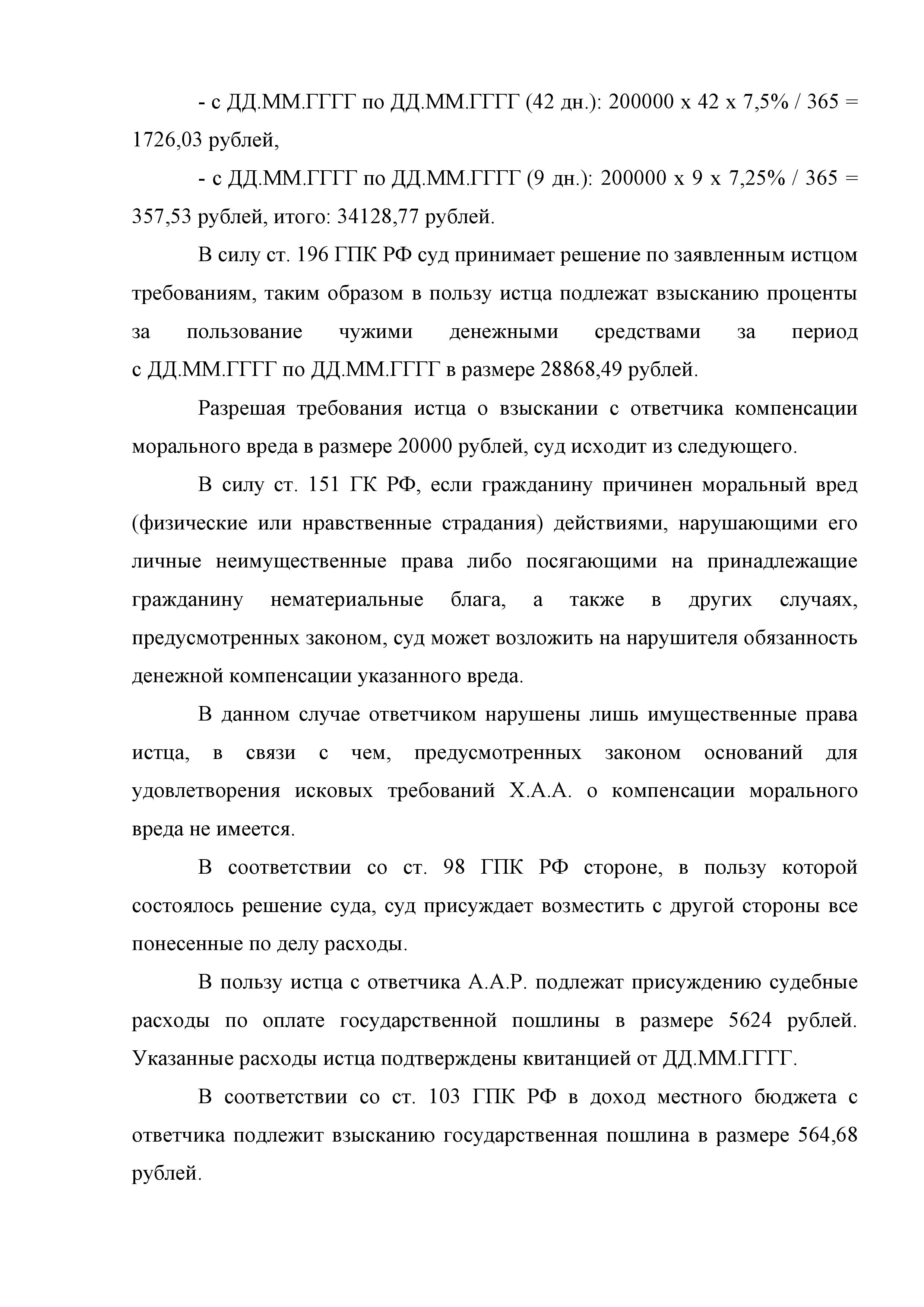 В результате, суд удовлетворил исковое заявление о взыскании долга по расписке, процентов за незаконное пользование денежными средствами.
